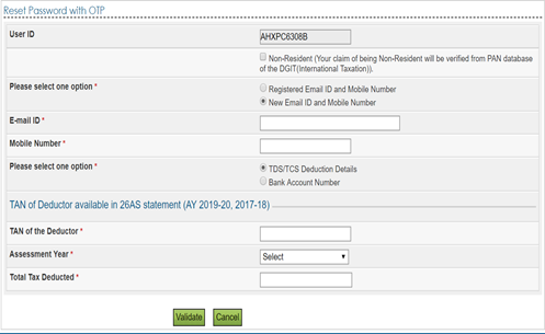 If user select this option then user have to provide any of the one detail entered in the last return filed along with the New Email ID and Mobile No: