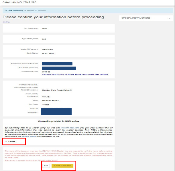 agree” Check Box and then click on “Submit to the Bank” Tab.