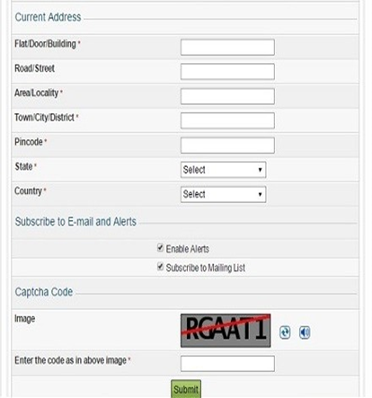 - On submitting the duly filled form, a six digit One Time Password (OTP) is sent to your mobile number and the email ID provided.
